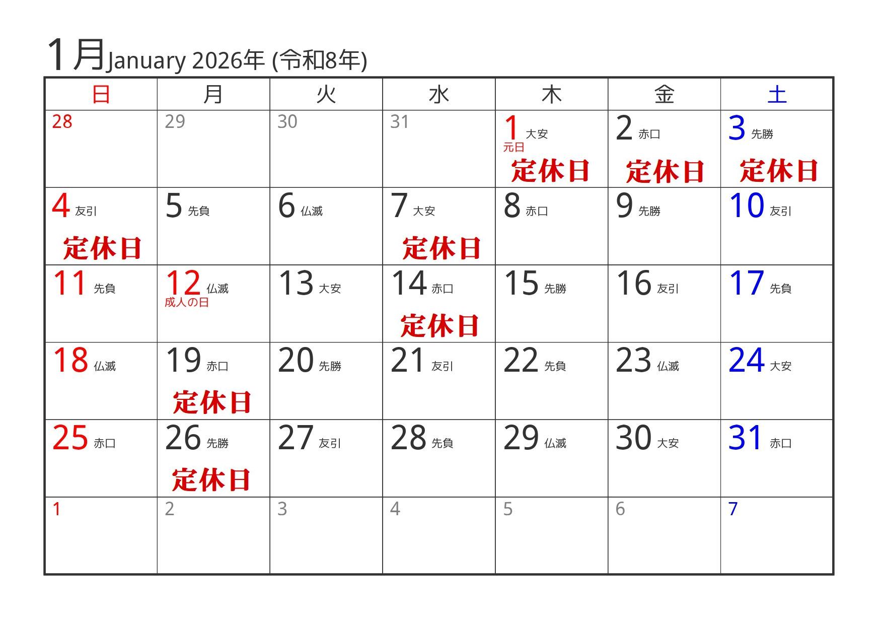 都合により年末年始の店休日は変更になることがございます。